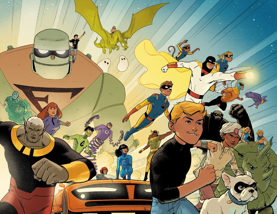 • Future Quest - Writer Jeff Parker (Aquaman, Justice League United, Batman ’66) and artist Evan “Doc” Shaner (Justice League Darkseid War: Green Lantern) join forces to bring fans new tales of adventure’s most iconic teenager, Jonny Quest, along with his sidekick Hadji. This series combines Team QUEST (Hadji, Race Bannon, Dr. Benton Quest and Jezebel Jade) with some of the most well-known action and adventure heroes ever created by Hanna-Barbera, including Space Ghost, The Herculoids, Birdman, Mightor, and Frankenstein Jr., among others.